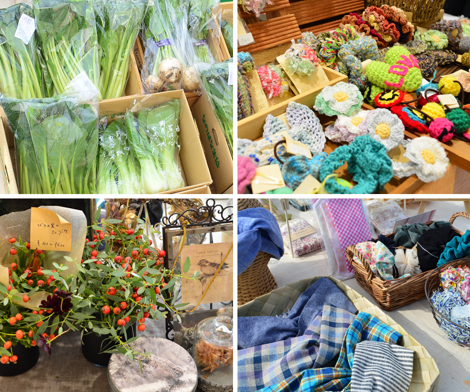 季節のお野菜、手作りのインテリア雑貨・ファッションアクセサリーなど様々なアイテムが並びます!