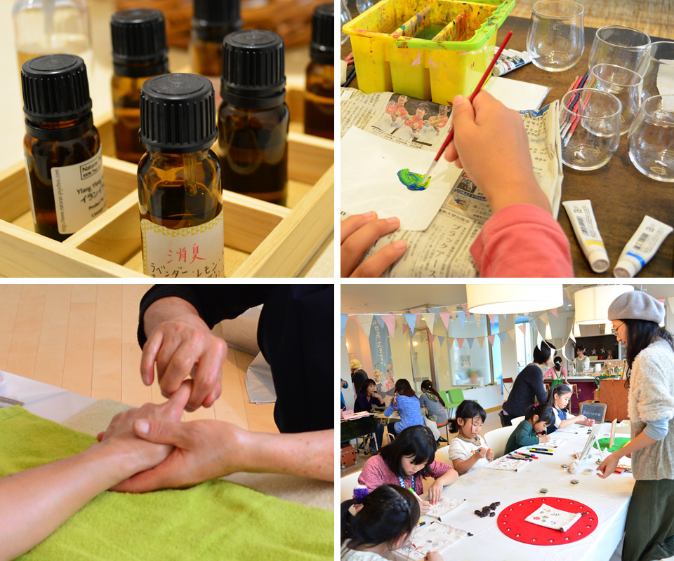 子供も大人も楽しめる本格派ワークショップ。丁寧に教えてくれるので楽しめます!アロマやマッサージのお店も魅力!